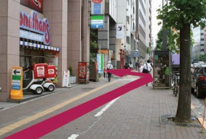 道路を渡り、コーヒショップサンマルクを左に見ながら歩道を進みます。