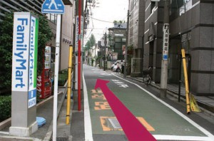 ファミリーマートの看板の角を左に曲がります。