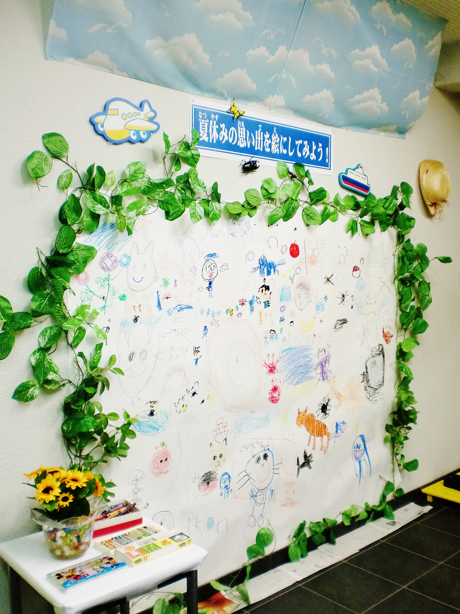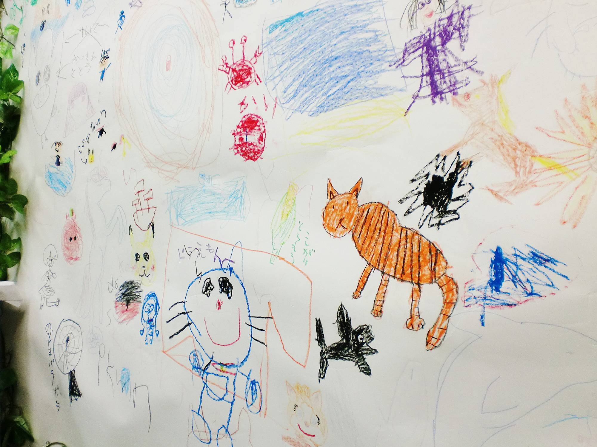 「芸術の秋」ということで、子ども達には巨大模造紙に絵を描いてもらいました。