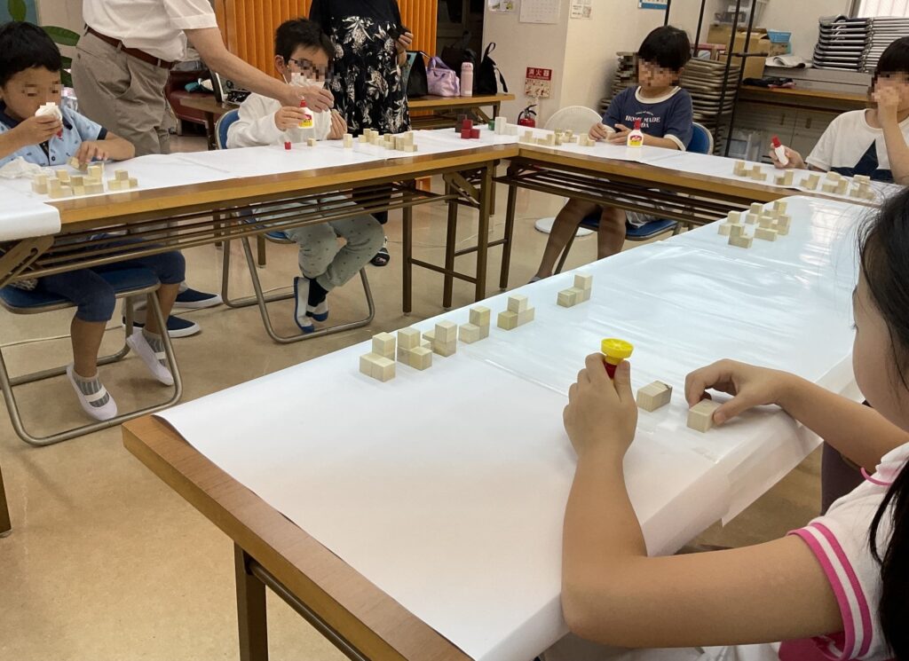 2024年8月29日 / 最終更新日時 : 2024年8月29日 TOMOE MI ACADEMY 講師ブログ ニキーチンの積木作り サマー工作についての報告です。 今年は2センチ角の立方体の木材をボンドで丁寧に貼りつけてニキーチンの積木を作り、日をおいて絵の具で色づけして完成させました! 自由に形を作って遊ぶのもよし、パターン図の問題の通りに組み立てられるかひとつずつ攻略していくのも楽しいです。大人の脳トレにも最適なので、7種類の積木の中で使わないものはどれか、いくつ使えばよいかなどと考えながらご家族みんなでチャレンジしてみてください。 M \ 最新情報をチェック / FacebookXBlueskyHatenaCopy