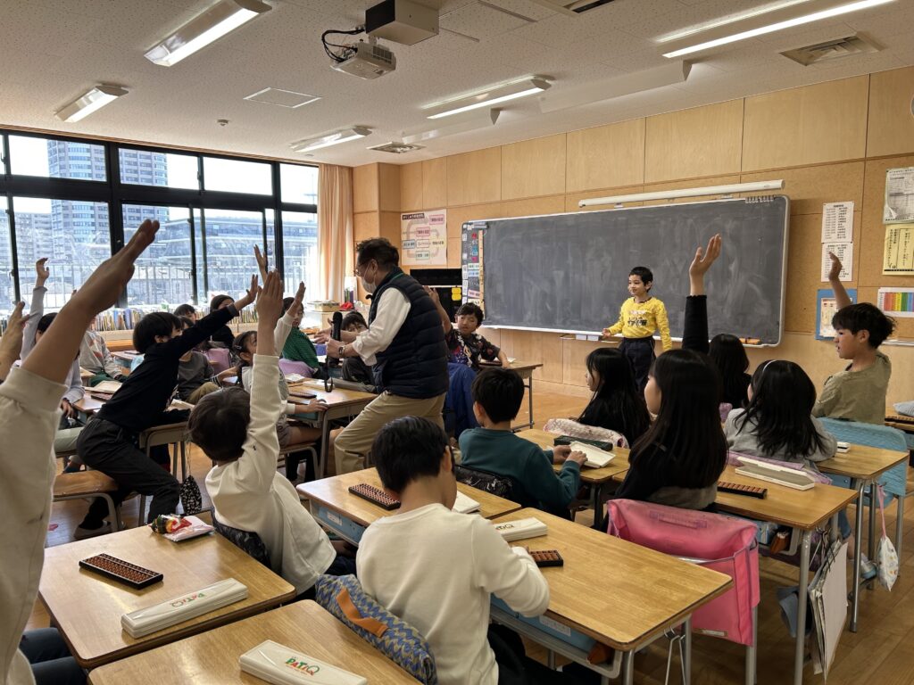 2025年3月24日 / 最終更新日時 : 2025年3月24日 TOMOE MI ACADEMY 講師ブログ 出前そろばん授業 今年も3つの小学校でそろばん出前授業を行ってまいりました。なかにはそろばんを見るのも触るのも初めてという生徒さんもいて、少し緊張した面持ちでそろばん授業を楽しみにしてくれていました。 そろばんの数の読み方を学び、読み上げ算を始めると、「簡単!楽しい!」と計算にハマってどんどん集中する3年生。しっかりと耳を傾けて読み上げる数字を聞いていないと、計算についていけないので、子どもたちの目は真剣そのものでした。 授業の最後は、人間そろばんで締めくくり!生徒がそろばんの玉の役になって計算しました。(M) \ 最新情報をチェック / FacebookXBlueskyHatenaCopy