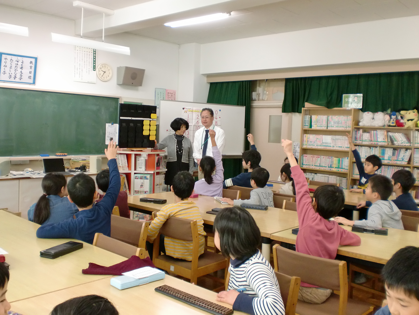 江東区立毛利小学校へ英語そろばんの出前授業に行って来ました。